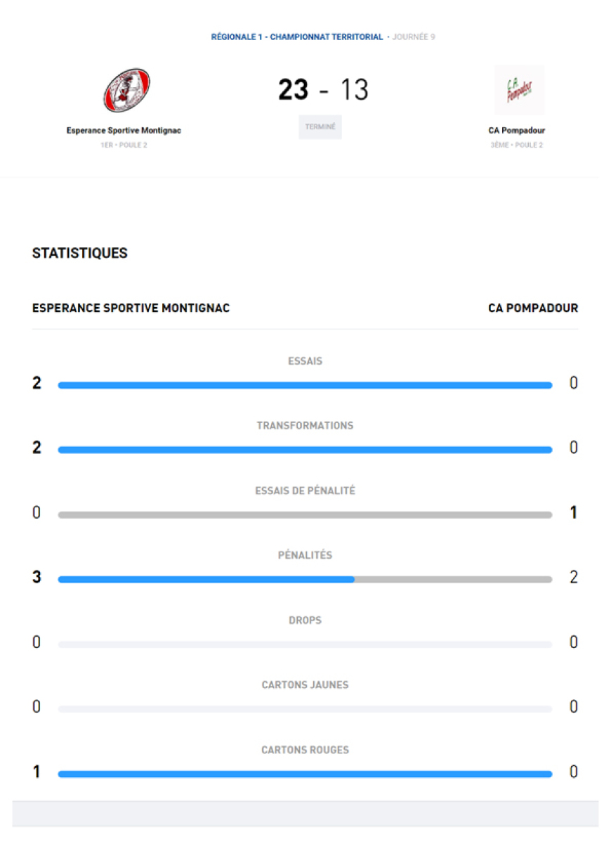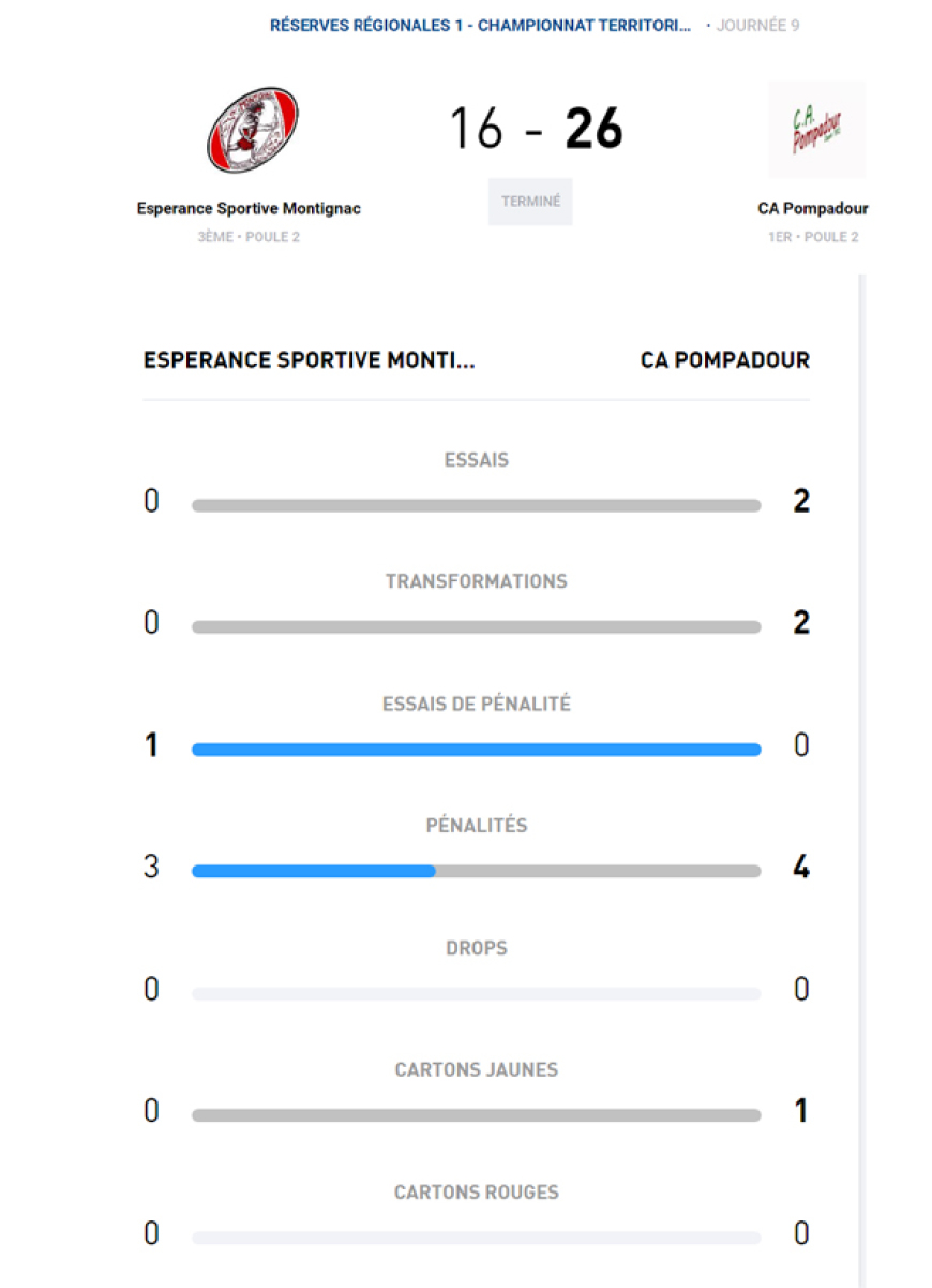 Un dernier essai transformé pour les locaux n’y changera rien .. Au contraire Romain Lagorce aggrave un peu plus le score final avec une pénalité.