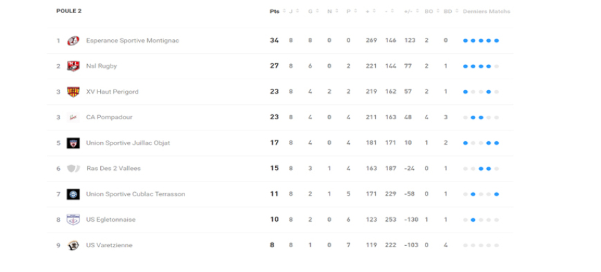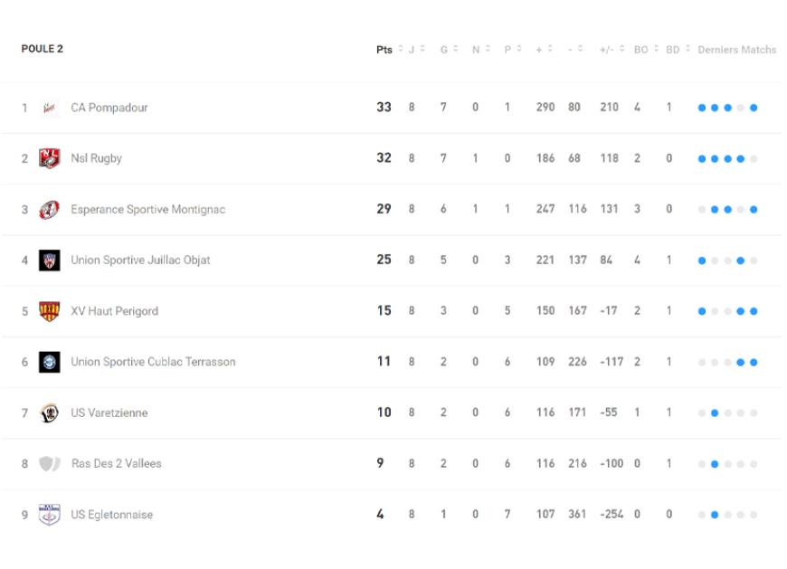 23-13 au final. Le fossé s’est creusé avec cette formation qui caracole au sommet de cette poule 2. Le CAP n’est plus sont dauphin car relégué à la 4eme place.
