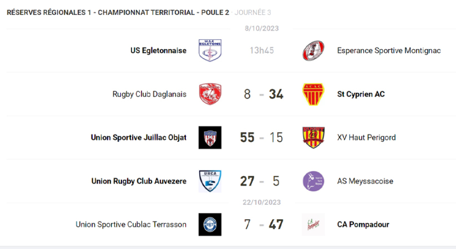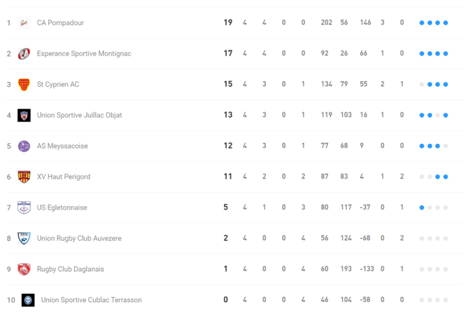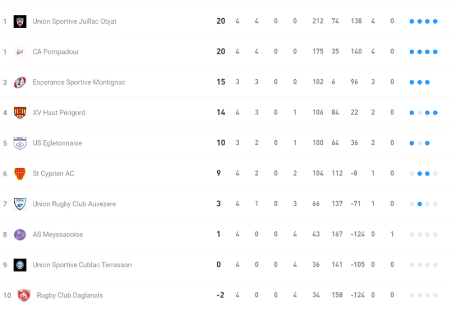 Victoire bonifiée qui leur permet de partager la place de leader du classement avec les voisins d’Objat/Juillac .