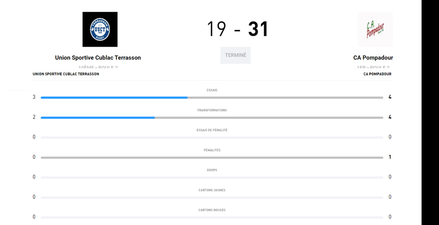 Et puis au retour tout va changer. Terrasson va serrer le jeu. Pompadour aura bien quelques situations mais à voir les capistes les mains sur les hanches le match devient âpre.